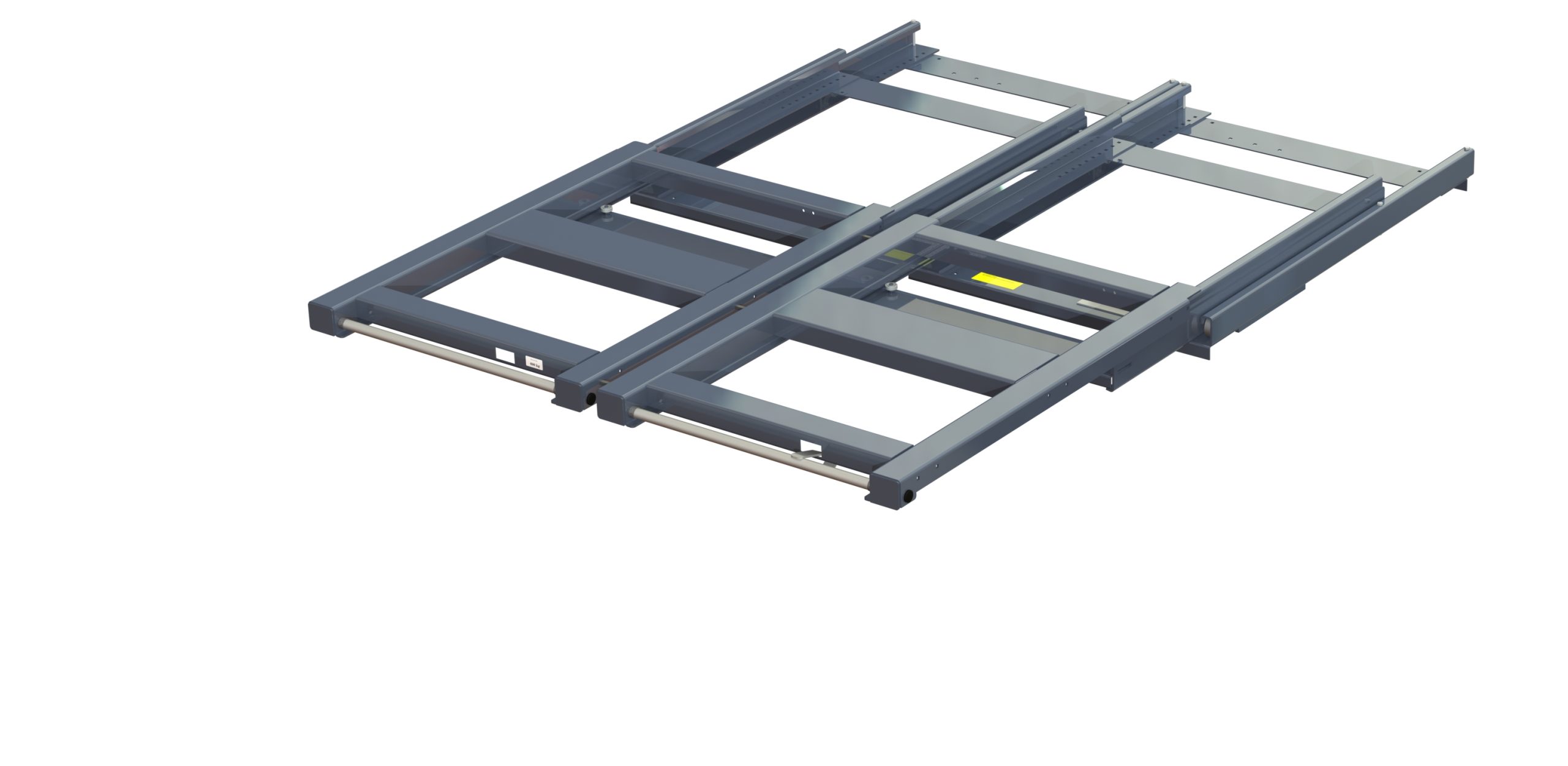Som tillbehör finns iläggsplåtar till den balkmonterade breda utdragsenheten som täcker hålen i den övre delen. Dessa iläggsplåtar gör det möjligt att förvara mjukare material som gummimattor och lätta skivor utan risk att de faller igenom. På förfrågan kan den balkmonterade breda utdragsenheten även utrustas med vikta kanter och materialavdelare för bättre struktur och hantering av olika typer av gods.