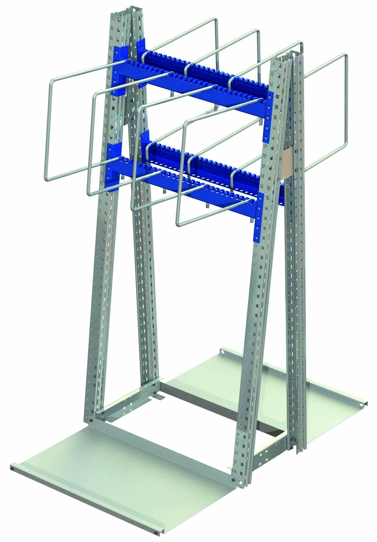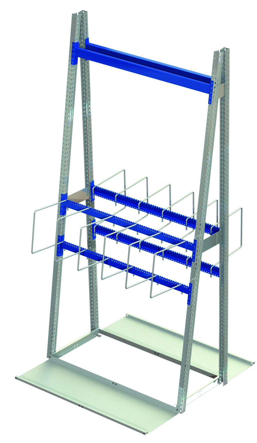 Listställ Lodur Standard, tvåsidigt, är ett kostnadseffektivt system för storskalig vertikal förvaring av långods med åtkomst från båda sidor av en gång. Det betjänar lagerplanerare som behöver maximera lagringskapaciteten per gångmeter för profiler, rör, lister och liknande material.